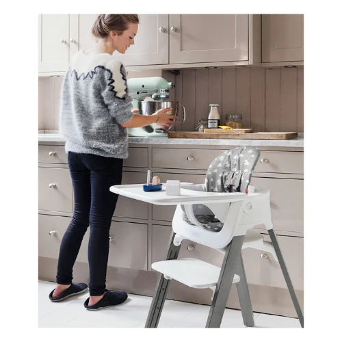 - Can be used together with the Stokke® Steps™ Bouncer bringing your newborn to the table and with the Stokke® Steps™ Baby Set to create the highchair.