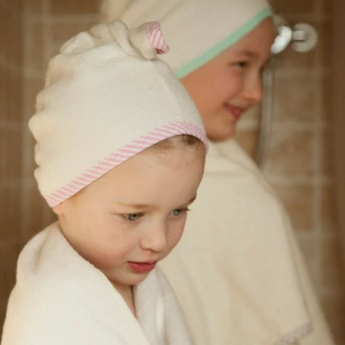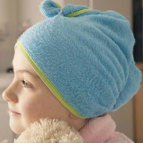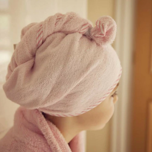 An award-winning product which makes drying children’s hair quick and easy – no more drips, no fuss, just fun!Ā You just put the towel on the child’s head, twist at the back and secure into the stretchy loop on top. We make them with silky soft natural bamboo fibre, so they are 60% more absorbent than cotton towels, so they really dry hair quickly and effectively.Ā Designed for children from about 18 months up – and don’t be left out yourself, the stretchy fabric means they will fit grown ups too!