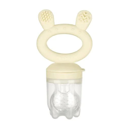 Our Feeder is super easy to assemble and use! Simply place fruit, vegetables or meat into the silicone pouch and seal tight. You can also freeze icy treats straight into our Feeder. To do this, simply slip over the leakproof pouch cover, pour liquid (such as breast milk or pureed food) into the pouch, assemble the Feeder, place the cap on and freeze! Once frozen, remove the pouch cover and let your one explore! They’ll enjoy having the ability to experience new tastes and textures while also building independence, learning to self-feed and improving their hand-eye coordination and fine motor skills.