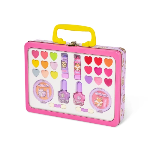 9 Eyeshadows, 9 Lip Glosses, 2 Lipsticks, 2 Nail Polishes, 2 Blushes, 2 Applicators