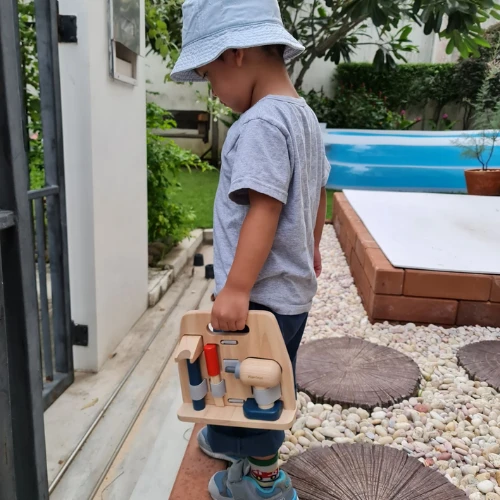 Whether you’re building, remodeling or repairing, the Handy Carpenter Set has every tool you’ll need for your project! Use the hand drill for installations, the hand saw for shaping wood, the claw hammer for setting materials into place, and other tools like the chisel and ruler to complete the job at hand. A handy wooden stand keeps all your tools in one place for easy access and portable use.