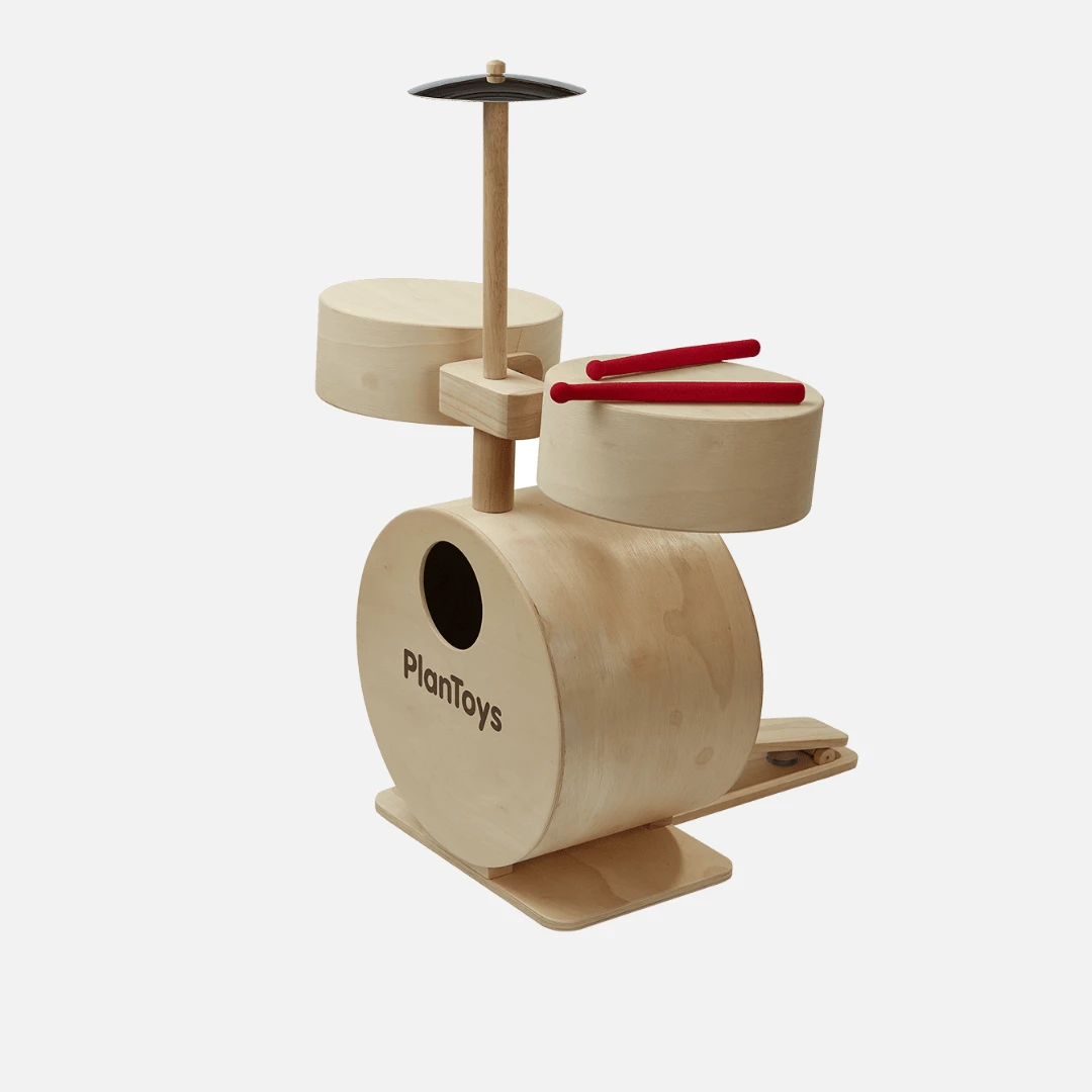 Join a rock band and take center stage with the PlanToys Drum Set! This musical playset is the first one in the world to be entirely made out of wood and comes with the ability to produce a variety of sounds and rhythms. Complete with a snare and bass drum, pedal, cymbal and pair of rubber drum sticks, children can strengthen their hand-eye coordination, motor skills, ability to concentrate, auditory acuity and more.