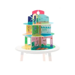 At first glance, Round Table by PlanToys ist a stylish, light-coloured play table round with a dark tabletop. On closer inspection, it quickly becomes an exciting toy that allows children to decorate it in whatever way the like. Thanks to a special matt finish, they can draw on it with chalk and wipe it off easily again and again. And the mysterious lid in the middle? Hides a secret basket drawer in which all the various colours can be stored. Provided, of course, it is not already in use as a doll bed, dinosaur cave, or fruit net.