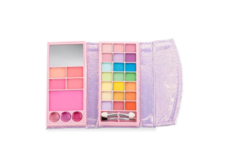 Inside you will find 21 super colorful eye shadows, 3 lip glosses, 5 blushes and powders and it comes with 2 applicators.