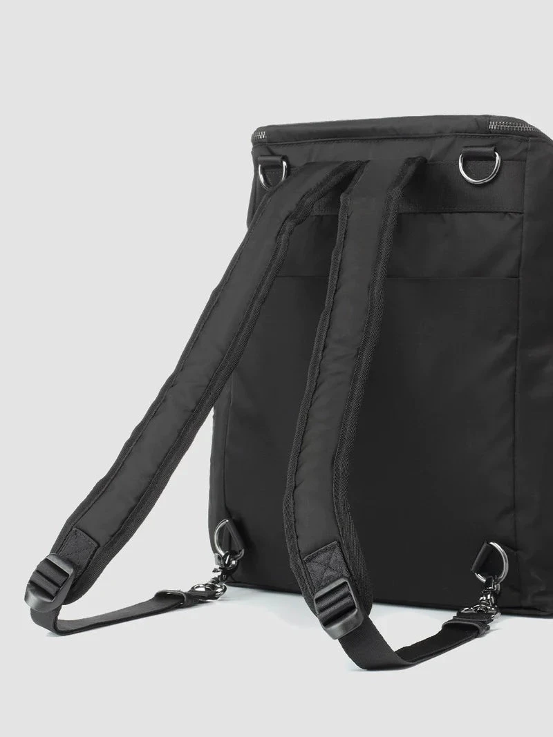 With multi-strap options The Alyssa is the convertible bag without compromise. Wear comfortably as a backpack with the fully padded straps, or tuck these into the back pocket and attach the leather shoulder strap for an elegant shoulder bag look.