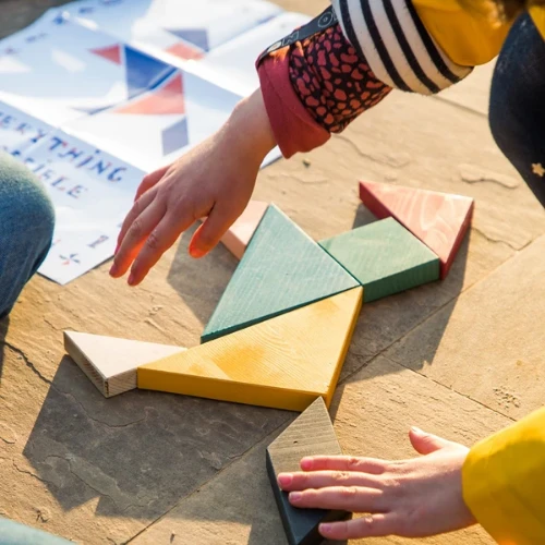 Wooden Tangram of 18 x 18 x 1,8 cm that includes an A3 size poster with instructions.